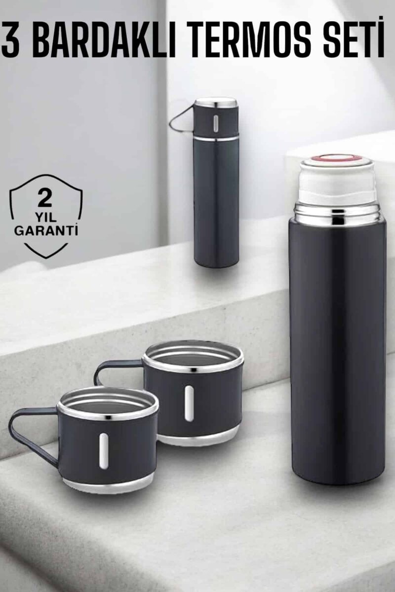 Paslanmaz Çelik 3’lü Termos Seti Vakumlu ve 8 Saat Isı Koruma