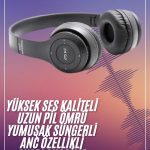 Bluetooth Kablosuz Kulaklık Siyah Wireless 5.0 Kulak Üstü Uzun Pil Ömrü