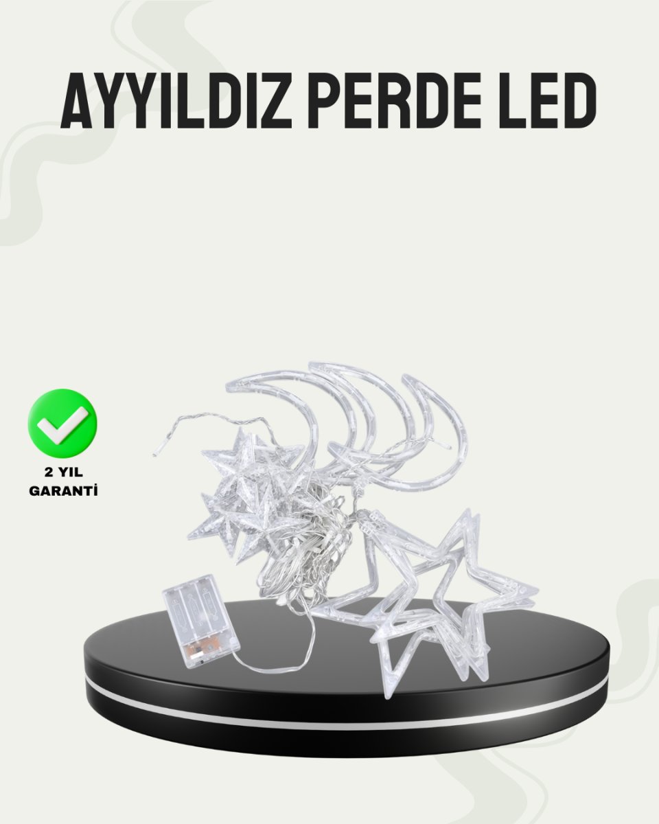 Prizli Yıldız Ay Perde LED Işık Ev ve Organizasyon Dekoru