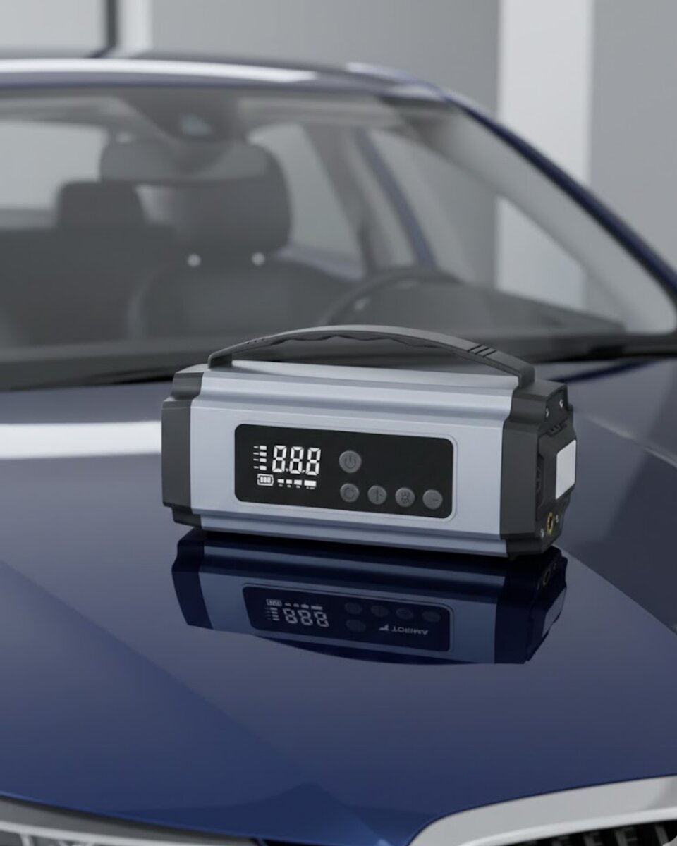 Taşınabilir Akü Takviye Cihazı Dijital Hava Kompresörü Powerbank ve LED Fener Bir Arada