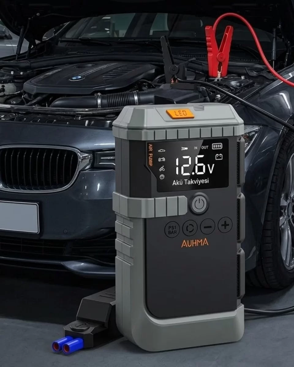 Taşınabilir Araç Çalıştırma Jump Starter Hava Pompası Dijital Basınç Göstergeli Güç Bankası