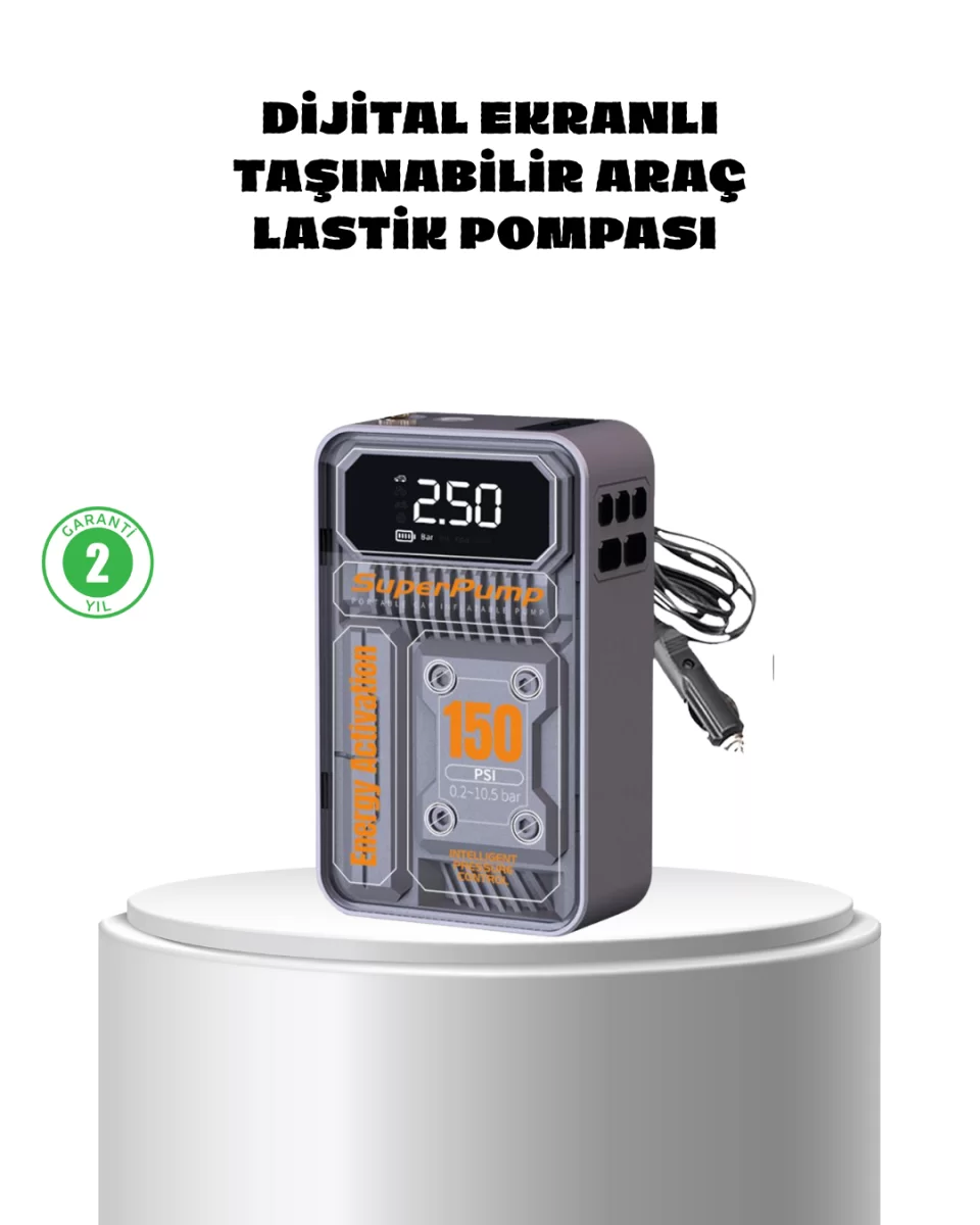Taşınabilir Kablosuz Hava Pompası – 150 PSI Güçlü Basınç ve 6000mAh Şarjlı