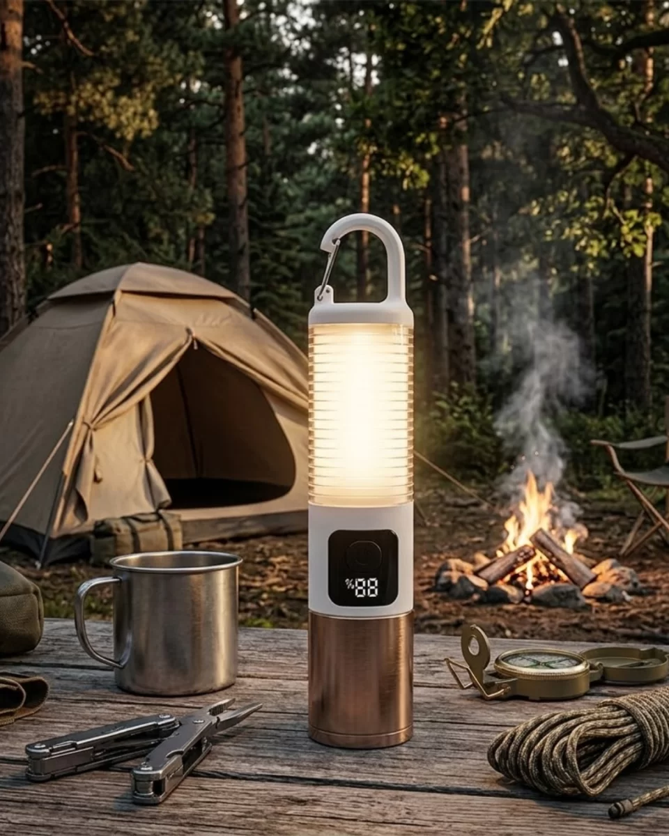 Taşınabilir LED Kamp Feneri USB Şarjlı Yüksek Parlaklık 500 Lümen Güç Göstergeli