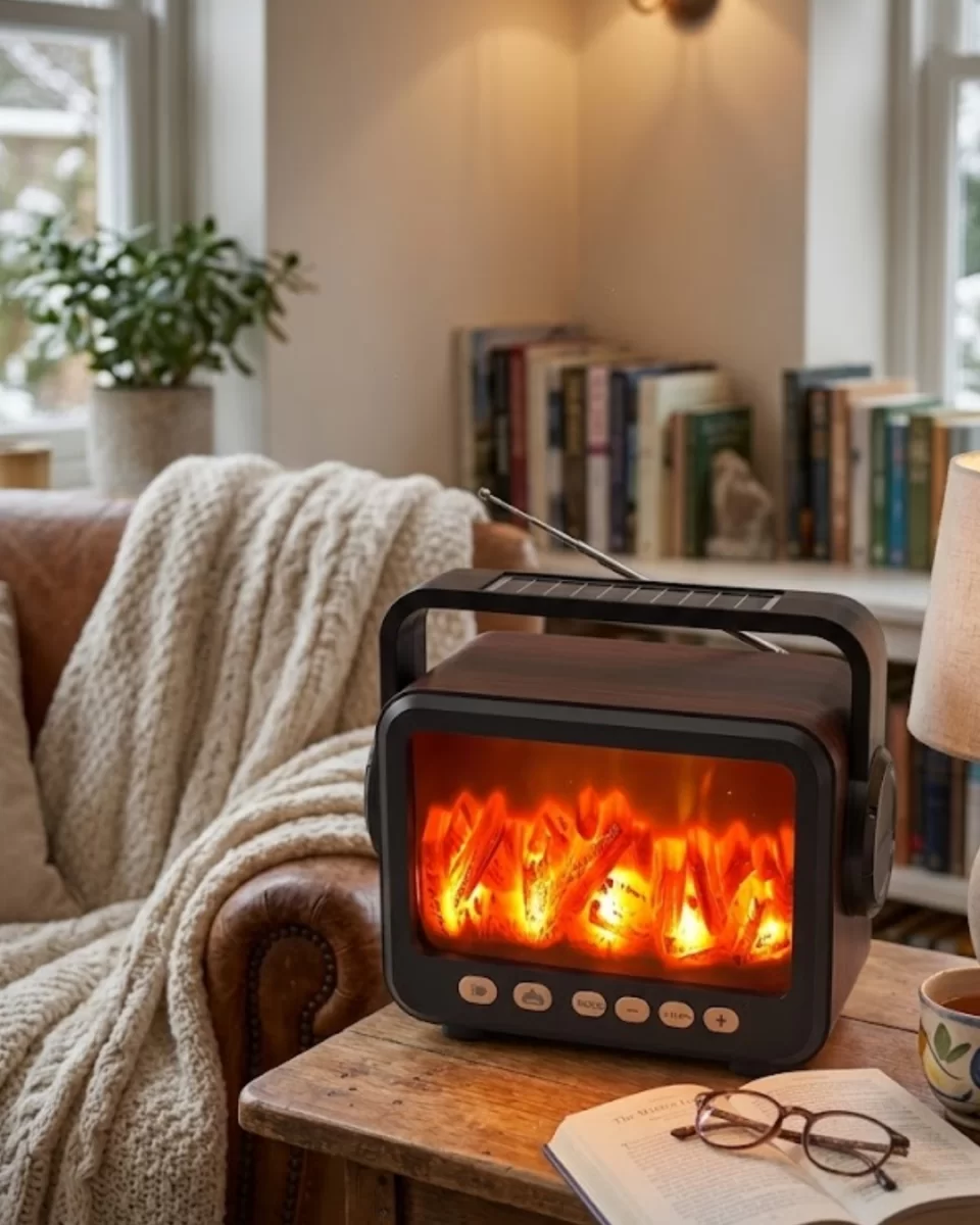 Taşınabilir Şömine Efektli Bluetooth Hoparlör LED Işıklı Radyo
