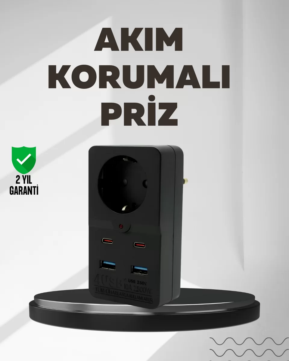 Tip Akım Koruma Prizi 10A 2500W USB Type C Destekli