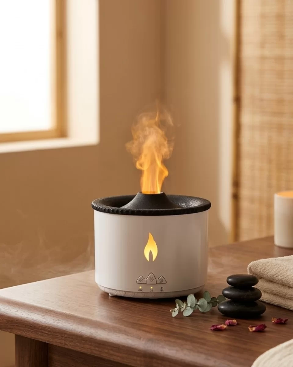 Ultrasonik Uçucu Yağ Difüzörü Alev Görünümlü Ortam Nemlendirici